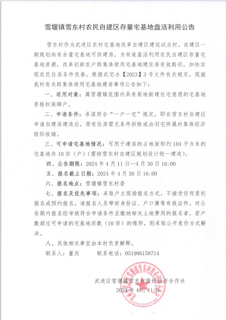 雪堰镇雪东村农民自建区存量宅基地盘活利用公告