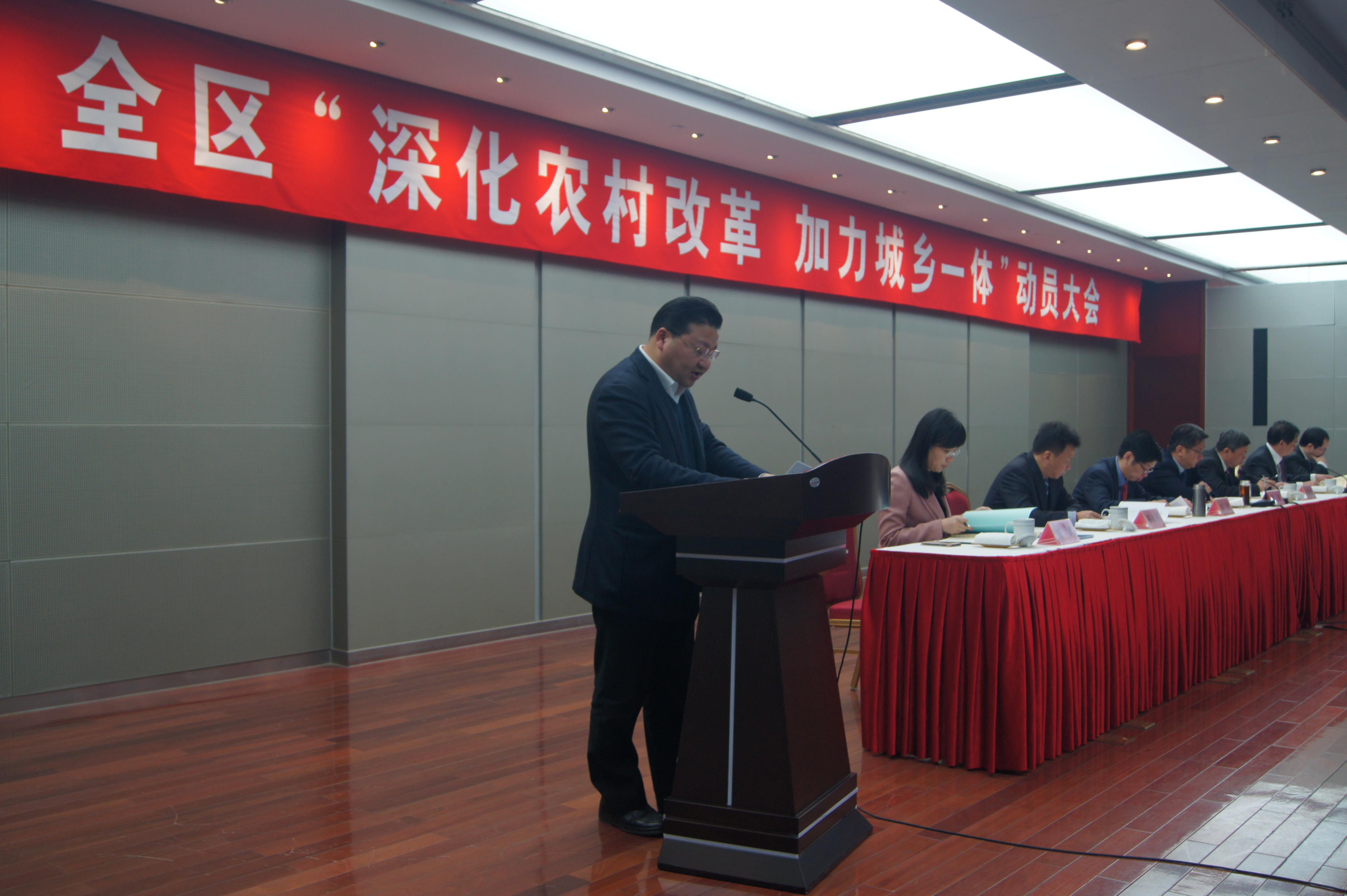 2月11日下午,全区“深化农村改革加力城乡一体”动员大会在区行政中心召开,会议全面部署了我区2015年农村产权交易工作等八项工程,区四套班子领导、各镇(街道)党政主要领导、分管领导及相关部门人员参加了会议。