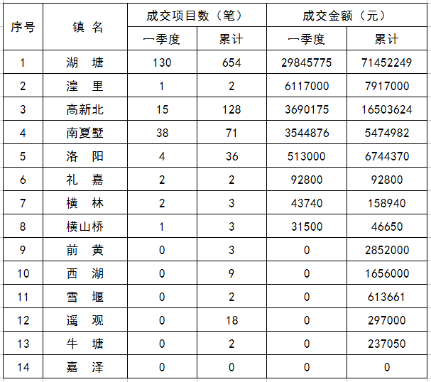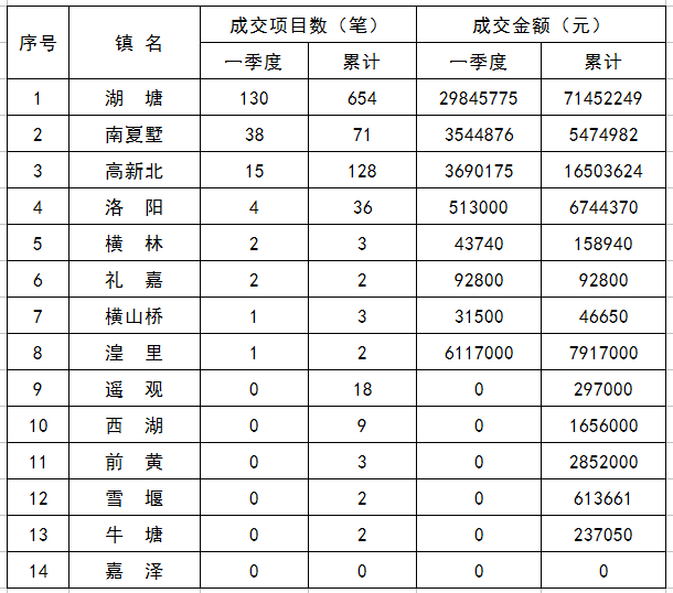2016年一季度各镇(街道)农村产权交易情况表