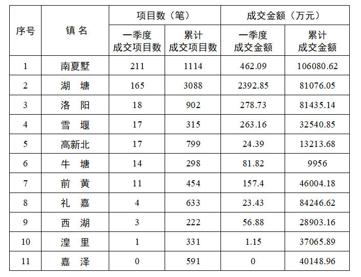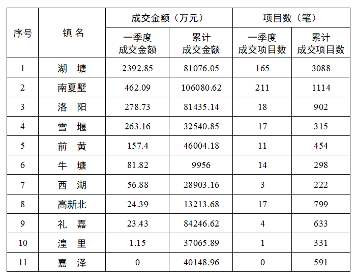 2021年一季度各镇(街道)农村产权交易情况表